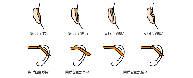 テンプルの曲げが耳うしろのカーブに沿っているか